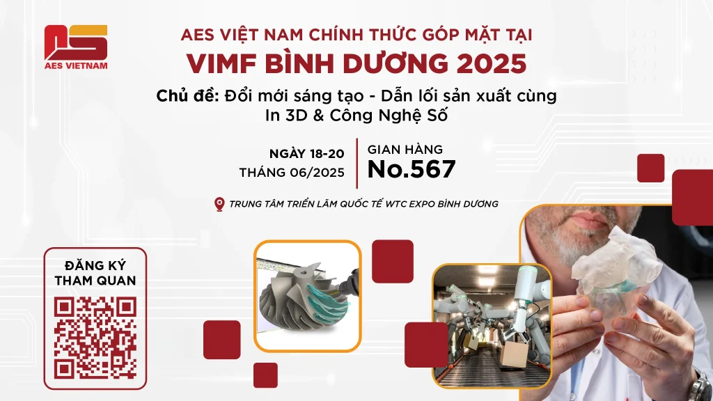 Từ ngày 18/06 đến 20/06/2025, AES Việt Nam sẽ chính thức góp mặt tại VIMF Bình Dương 2025 với gian hàng No. 567 tại Trung tâm Triển lãm Quốc tế WTC Expo Bình Dương. Với chủ đề chiến dịch “Đổi mới sáng tạo – Dẫn lối sản xuất cùng in 3D và công nghệ số”, AES Việt Nam kỳ vọng mang đến những trải nghiệm công nghệ tiên phong, thúc đẩy sự chuyển mình toàn diện của ngành sản xuất tại Việt Nam.